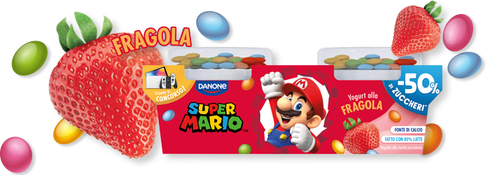 Ingredienti yogurt: yogurt, preparazione di fragola 11% (purea di fragola 38%, zucchero, addensanti: amido modificato, pectina; colorante: carminio; aromi, correttori di acidità: acido citrico, citrato di calcio, citrato di sodio; antiossidante: acido ascorbico; vitamina D), zucchero 2,2%, aroma naturale.
