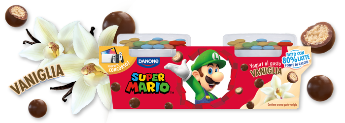 Ingredienti yogurt: yogurt, preparazione dolciaria alla vaniglia 5% (zucchero, addensanti: amido modificato, pectine; aroma, aromi naturali; correttori di acidità: sodio citrato, acido citrico; colorante: luteina; vitamina D), zucchero 2,4%, aroma naturale.